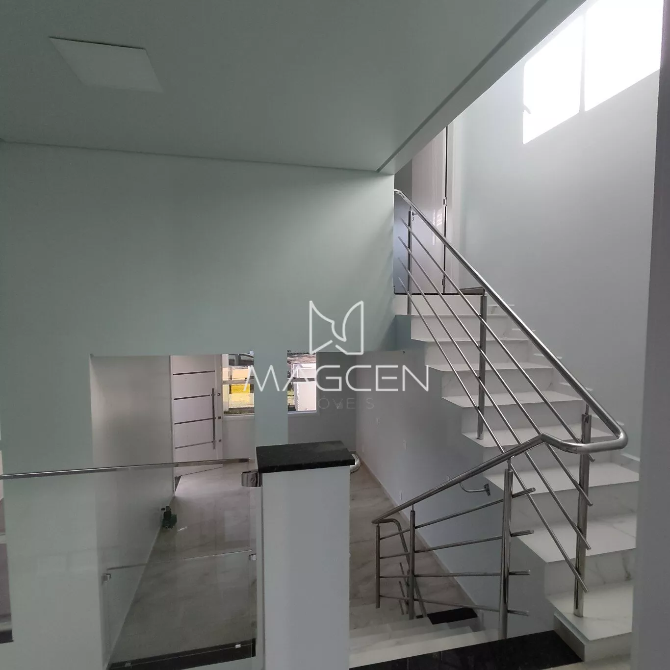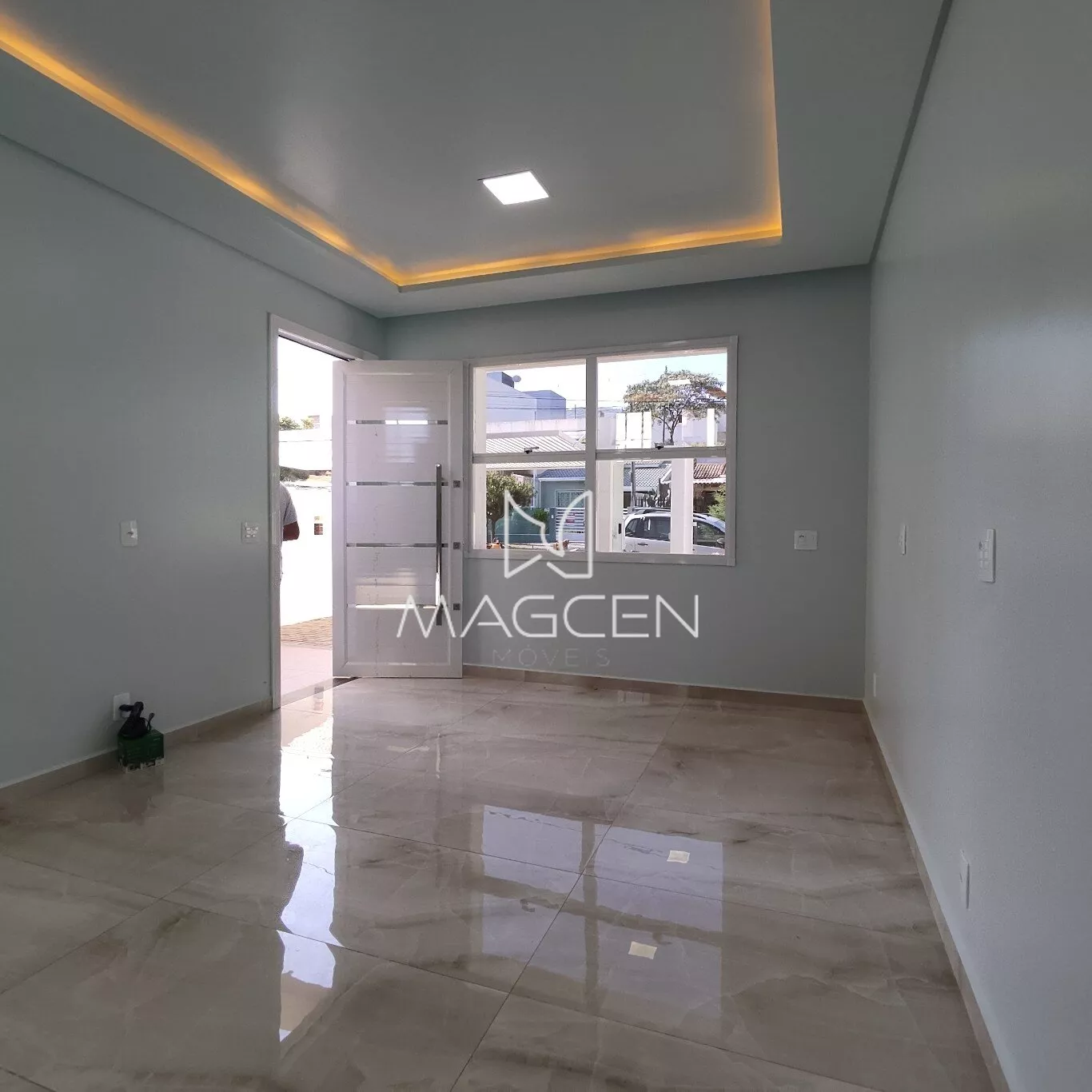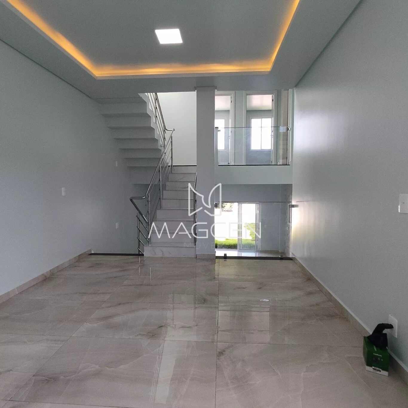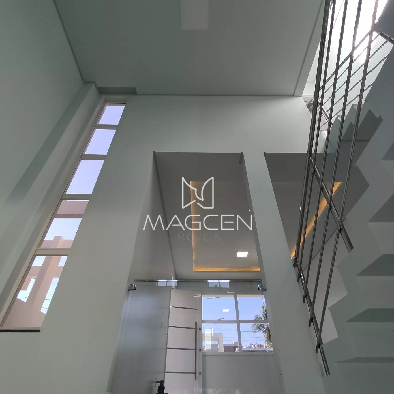 Acabamentos e adicionais incluem porcelanato, laminado, gesso trabalhado com iluminação paralela, guarda corpo em vidro, corrimão em inox, esquadrias e aberturas em alumínio, portas laqueadas, iluminação em LED, persiana externa retrátil, pontos de ar condicionado, portão eletrônico, acesso social coberto com interfone, e iluminação inteligente na área externa.
