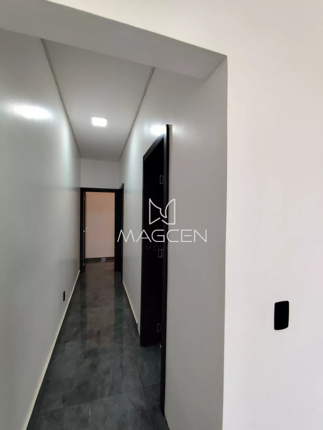 -Portas internas metálicas pretas com maçanetas cromadas;