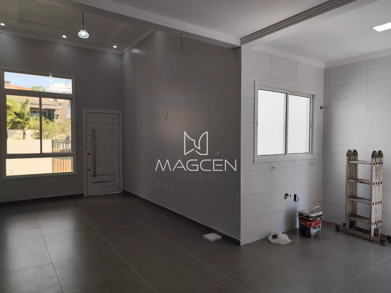 -Porcelanato acetinado cinza na casa exceto nos quartos que será laminado.