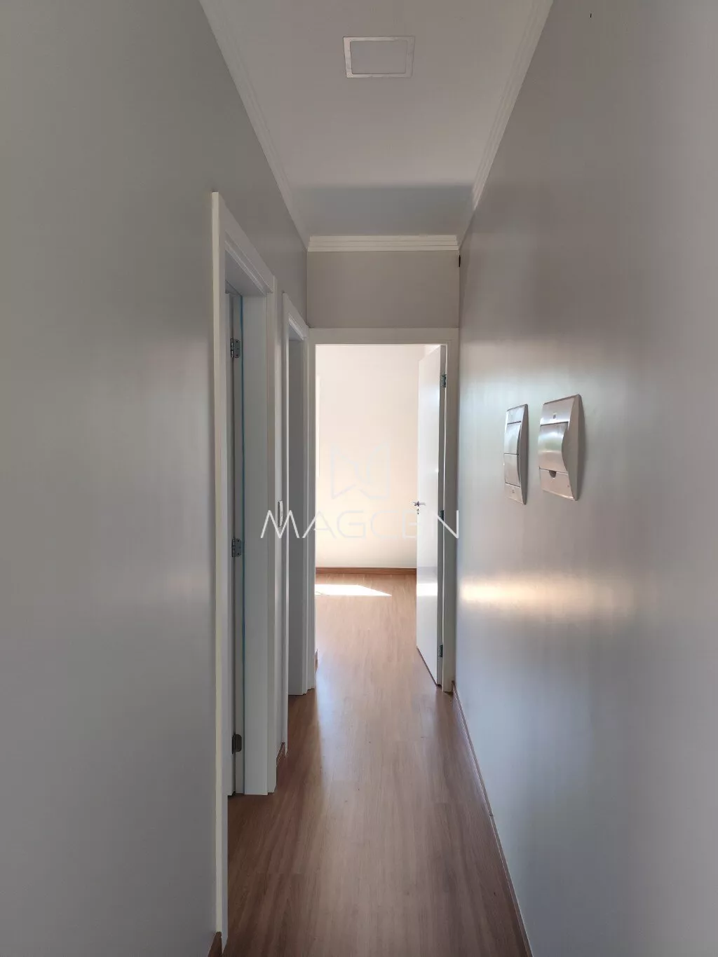 -Portas brancas laqueadas com batente em PVC;