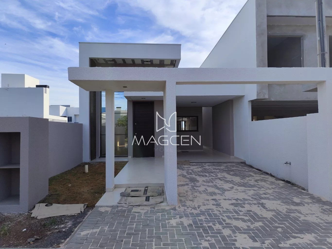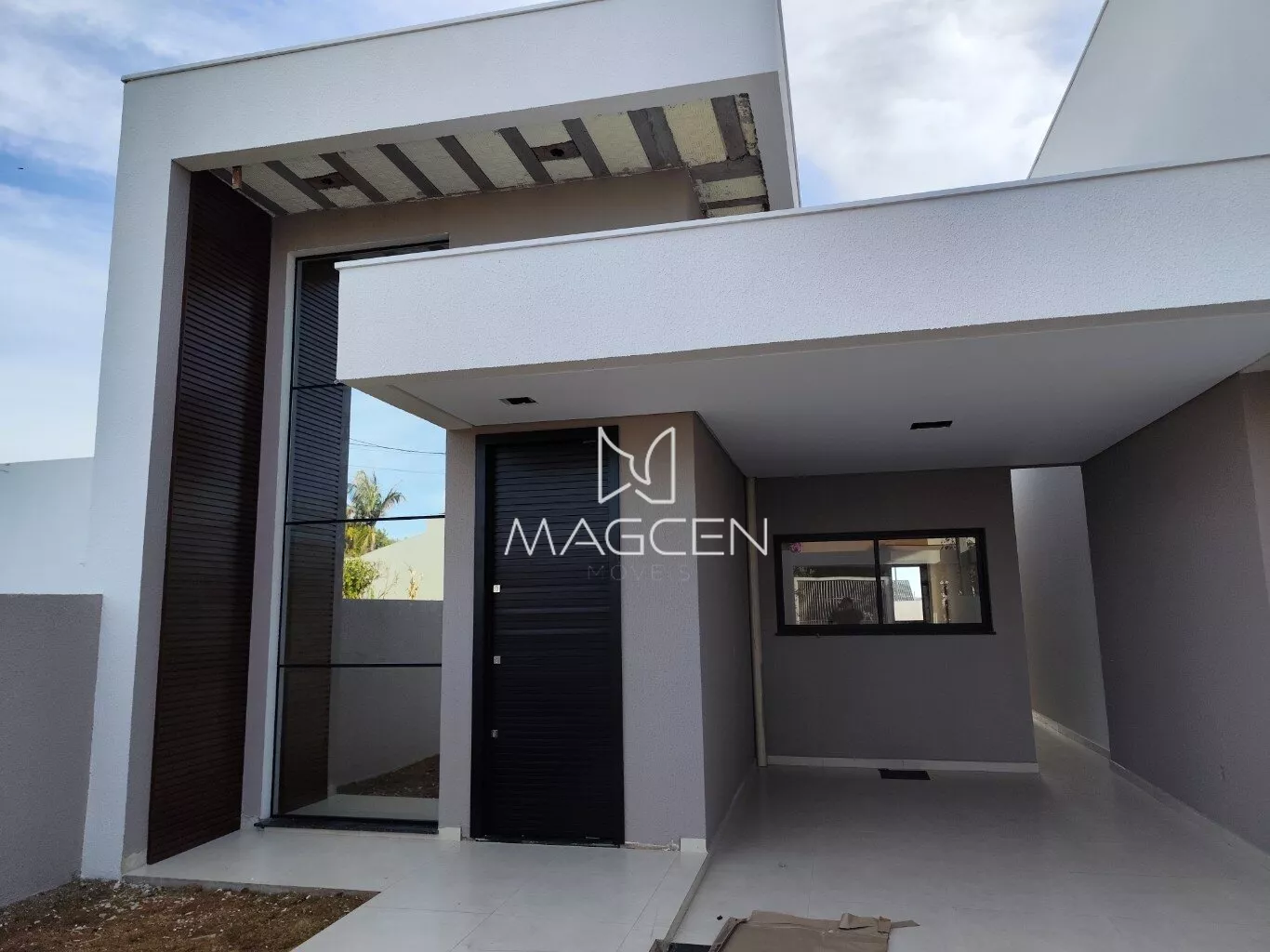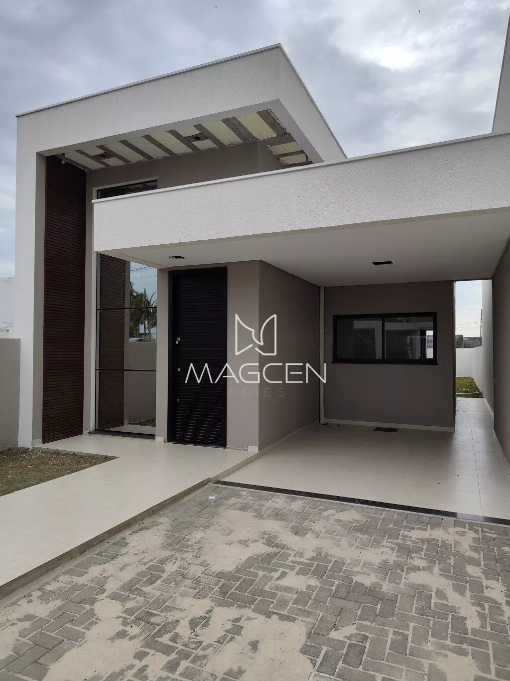 -A casa possui garagem coberta para um veículo e uma vaga descoberta