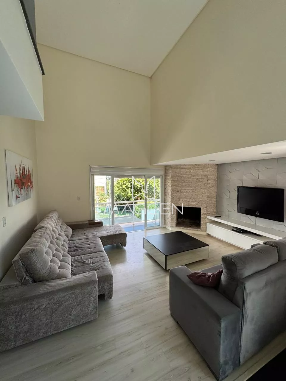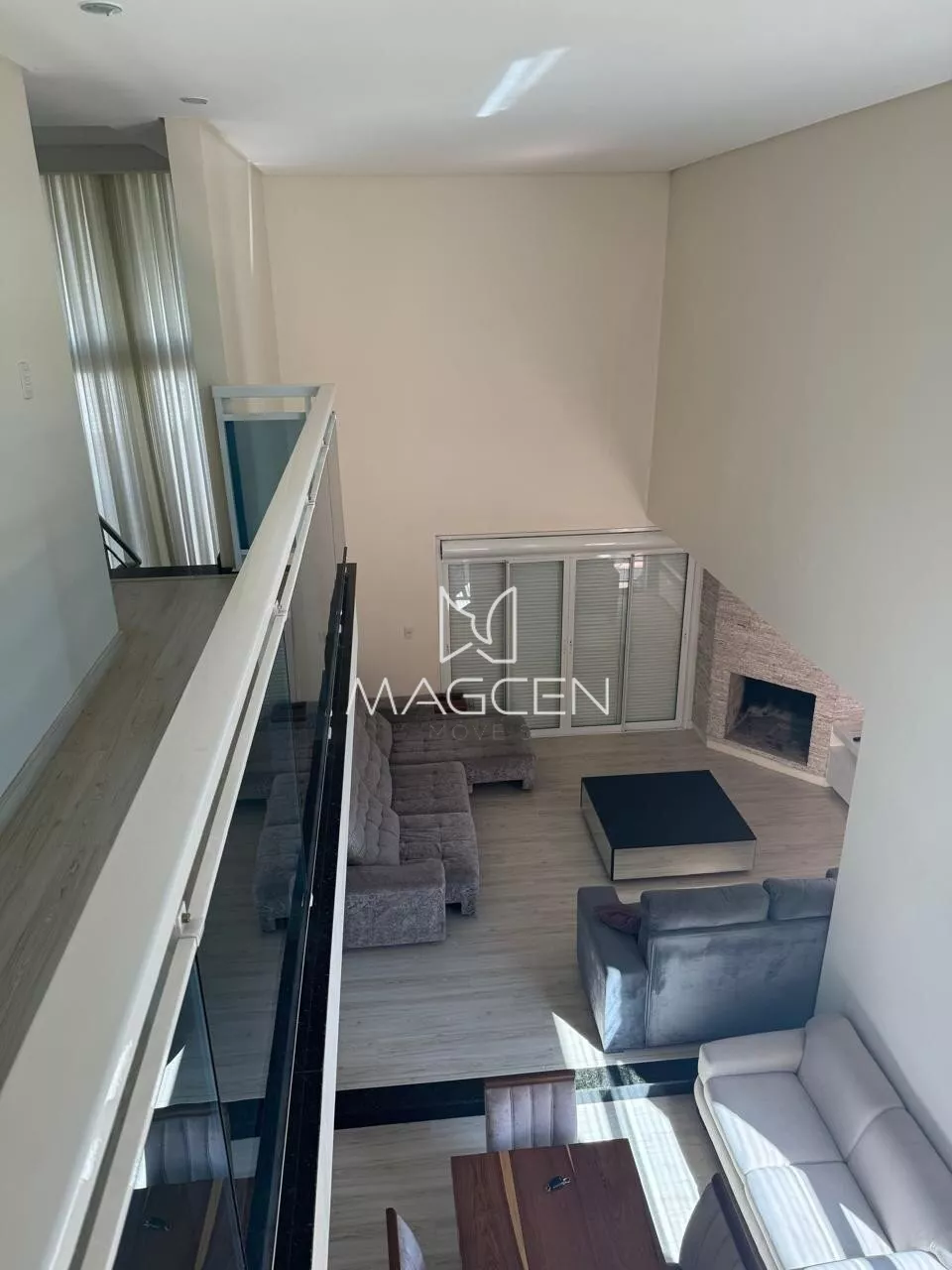 🔑 Sala de estar com lareira e sacada;