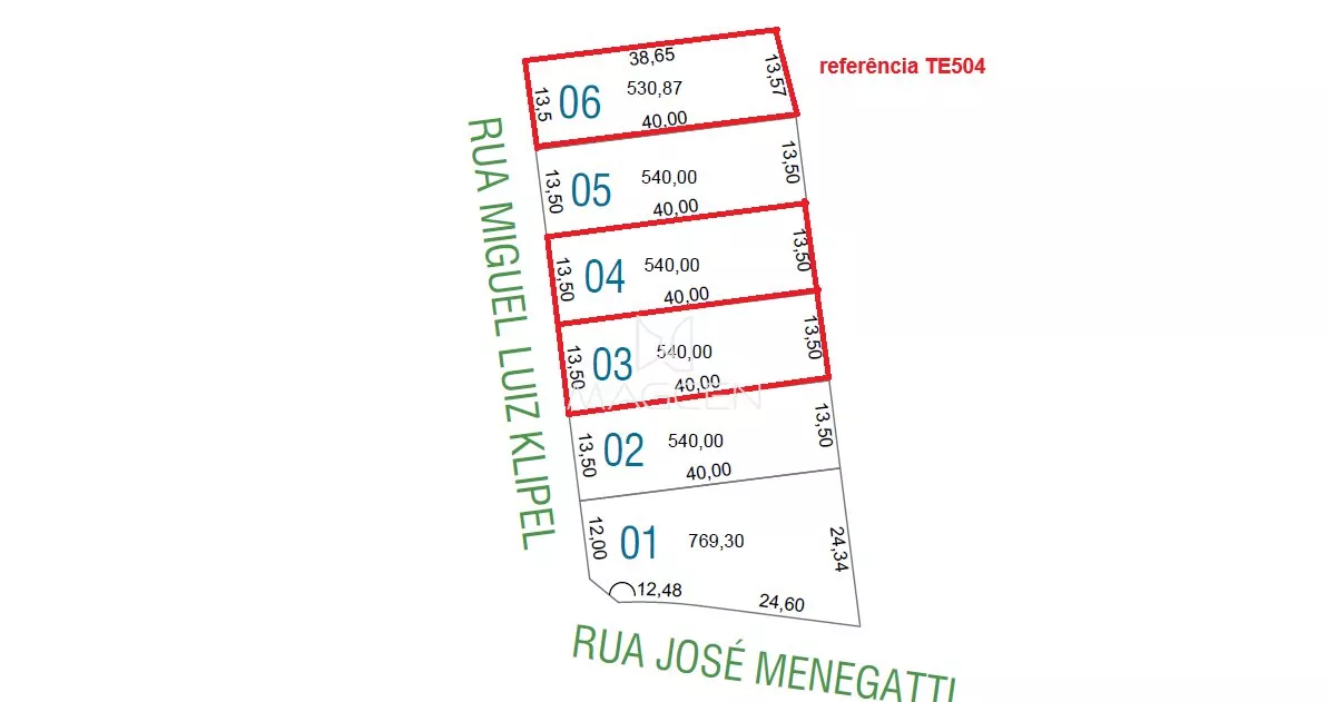 Fundos: 13,50 (área de mata)