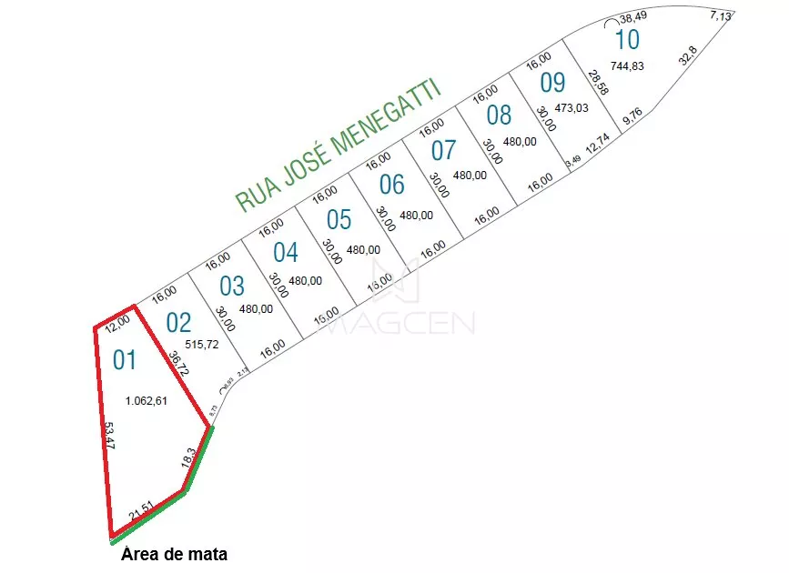 Fundos: 21,50 m (área de mata)
