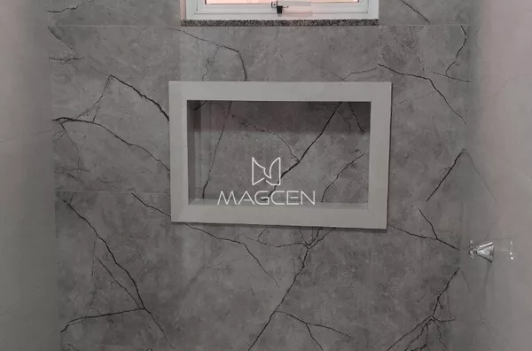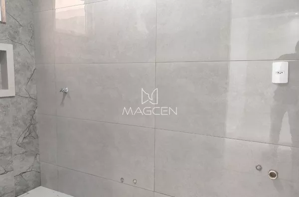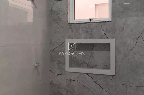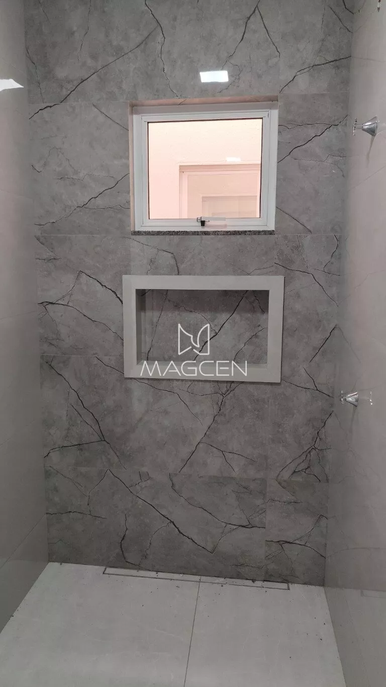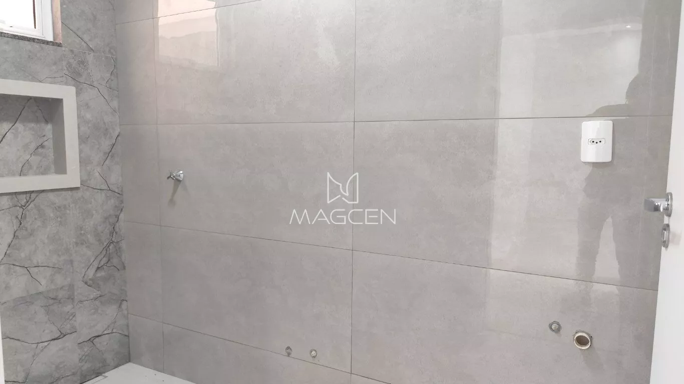 🔑 Porcelanato nos ambientes sociais e úmidos e laminado nos quartos.
